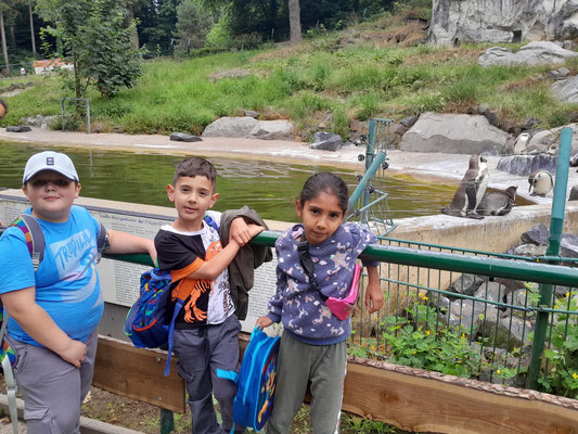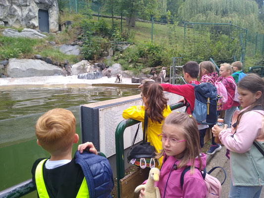 Aber wer so viel erlebt und über so viel staunt, der wird auch irgendwann müde, egal wie sehr man dagegen ankämpft. Und so machten sich die 1. Klassen müde, aber sehr zufrieden wieder auf dem Heimweg. Und so hieß es: Bis bald, Löwe und Pinguin! Beim nächsten Besuch sind wir schon wieder ein ganzes Stück gewachsen, aber diesen Tag vergessen wir nie!