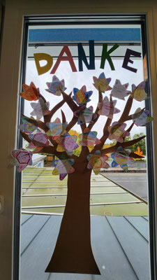 Neben dem Austausch von Wissen und Geschichten konnten die Kinder auch kreativ werden. Sie bastelten einen Dankesbaum mit Blüten, der nun die Fenster des Klassenraumes schmückt. Diese Aktivitäten halfen den Schülern, ihre Dankbarkeit auf kreative Weise auszudrücken.